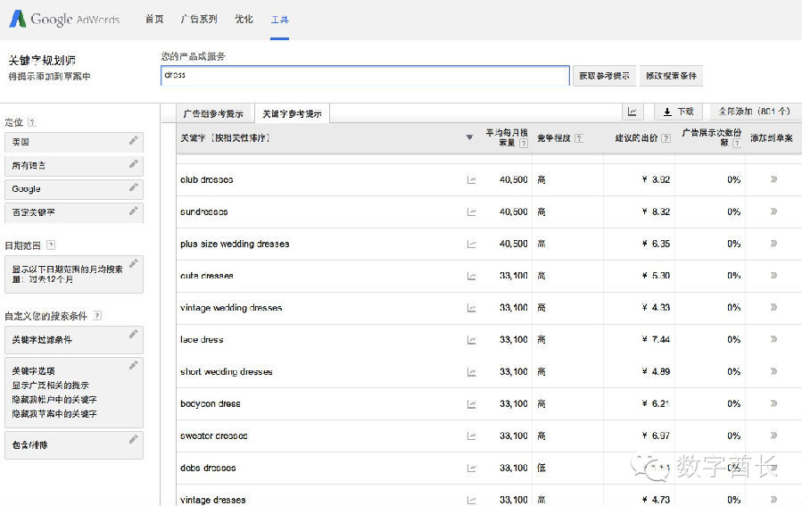 搜索的需求是相近的,所有我们可以在adwords这里寻找相关词,找到相关的词后,可以通过下载。获取这些词。网上有非常多关于Adwords 的相关教程,大家可以自己了解一下。