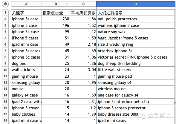 可以通过报表右上角下载按钮,下载这些数据,在Excel中查看,从中获得长尾或者相关关键词来扩展自己的关键词词库(PS:人们之前搜索能提供更多长尾词的思路)